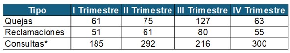 Durante el periodo del 01 de enero al 31 de diciembre de 2024, se atendieron un total de 573 denuncias (quejas y reclamaciones) y 993 consultas, desglosadas de la siguiente manera: