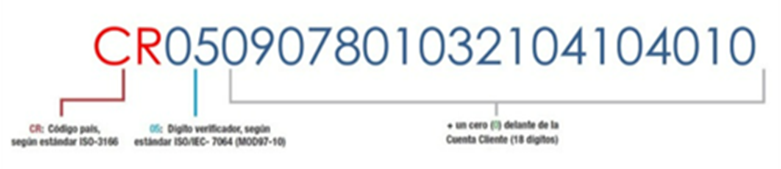 Presentar número de cuenta IBAN, esta consta de 20 dígitos más el código país (CR).